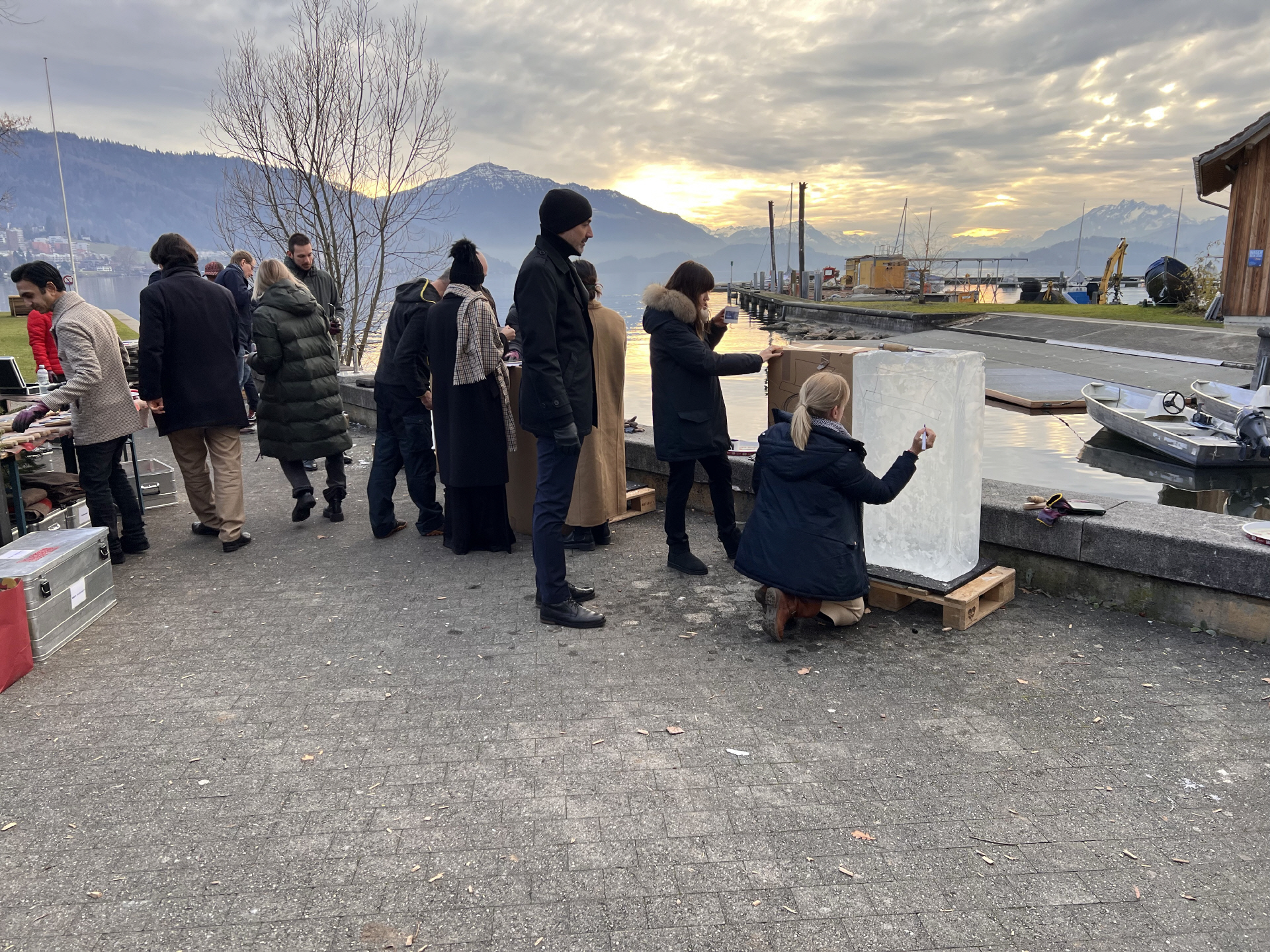 Eisblöcke, Schnitzwerkzeug, Handschuhe, Instruktor/en
